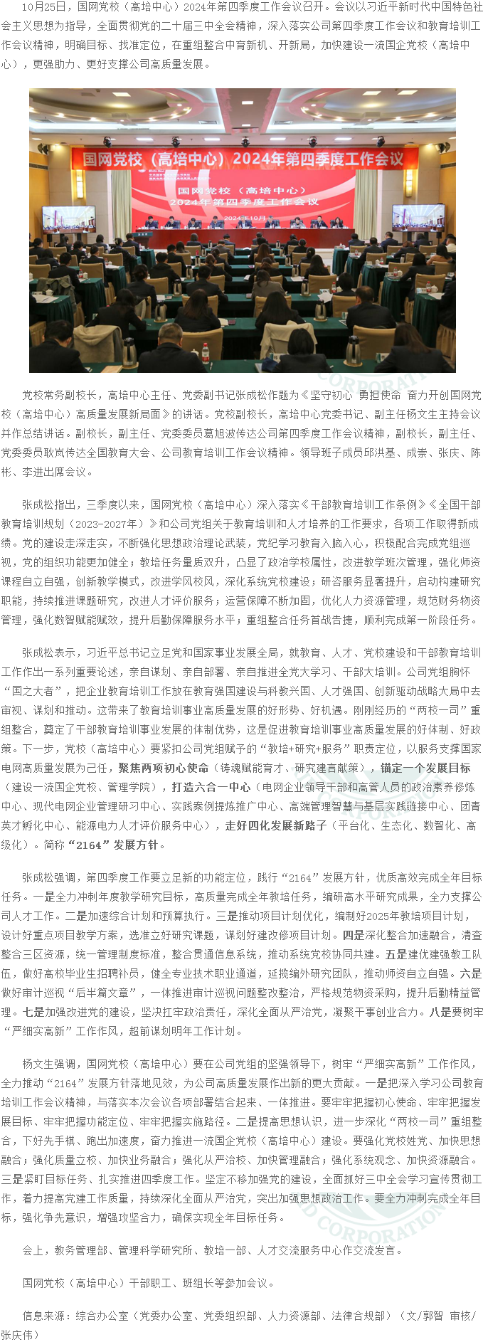 • 國網黨校(高培中心)召開2024年第四季度工作會議